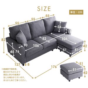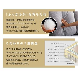 レイアウト自在! 3人掛けカウチソファ【Wismon -ウィスモン-】 (ポケットコイル入り 選べる8色)